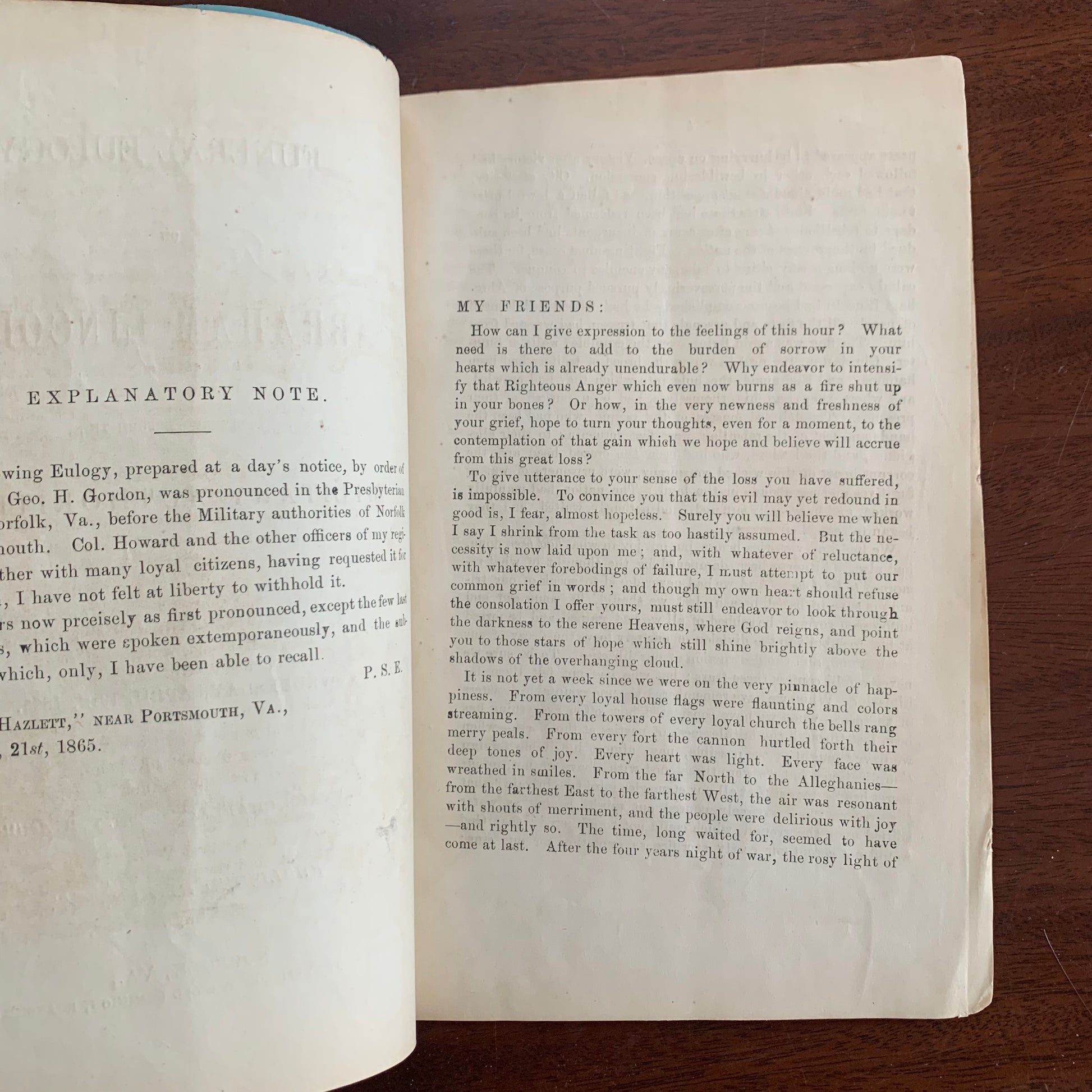 1865 Rare Funeral Eulogy on Abraham Lincoln / Military Authorities Norfolk VA