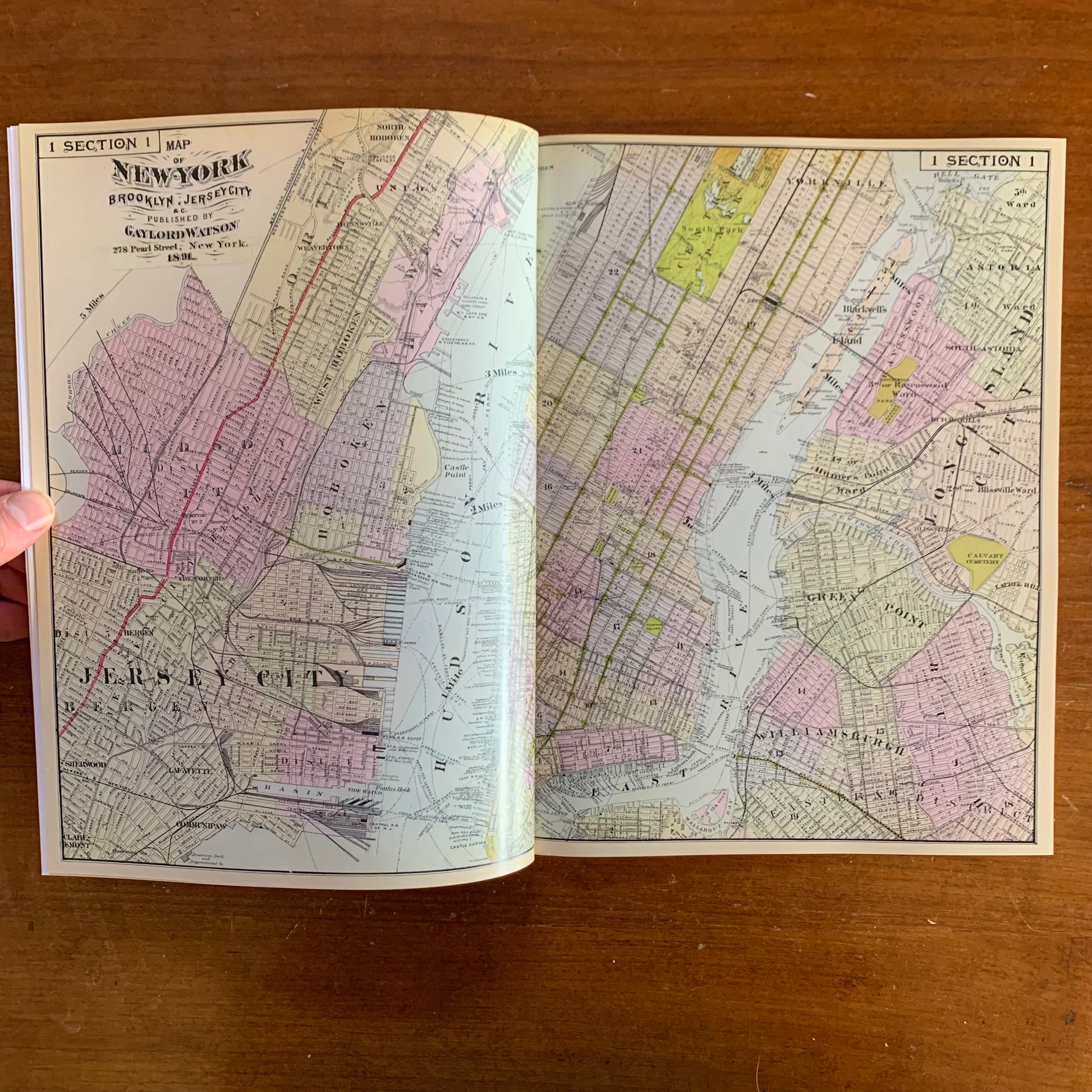 1891 Atlas of the Hudson River Valley New York City to Troy / Color Reprint